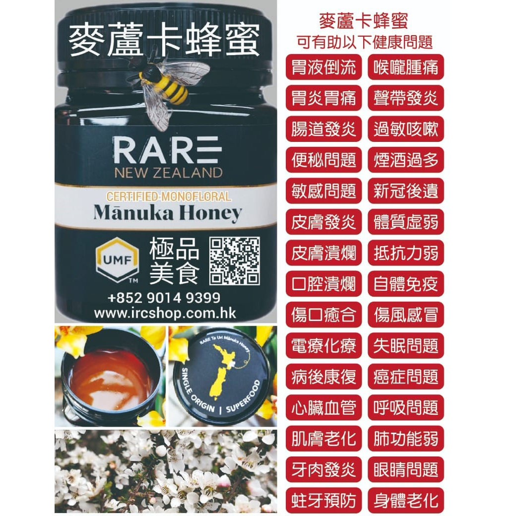 麥蘆卡蜂蜜 Manuka Honey 對體質虛弱、抵抗力差、易患感冒、呼吸道及肺功能弱、喉嚨腫痛、過敏咳嗽、腸胃欠佳、腸胃敏感、胃痛、便秘、煙酒過多、改善睡眠、促進創傷及燒傷後的傷口及皮膚潰爛的癒合、滋潤及舒緩敏感性肌膚、美顏、預防蛀牙、牙齦炎及牙週炎,可有幫助。